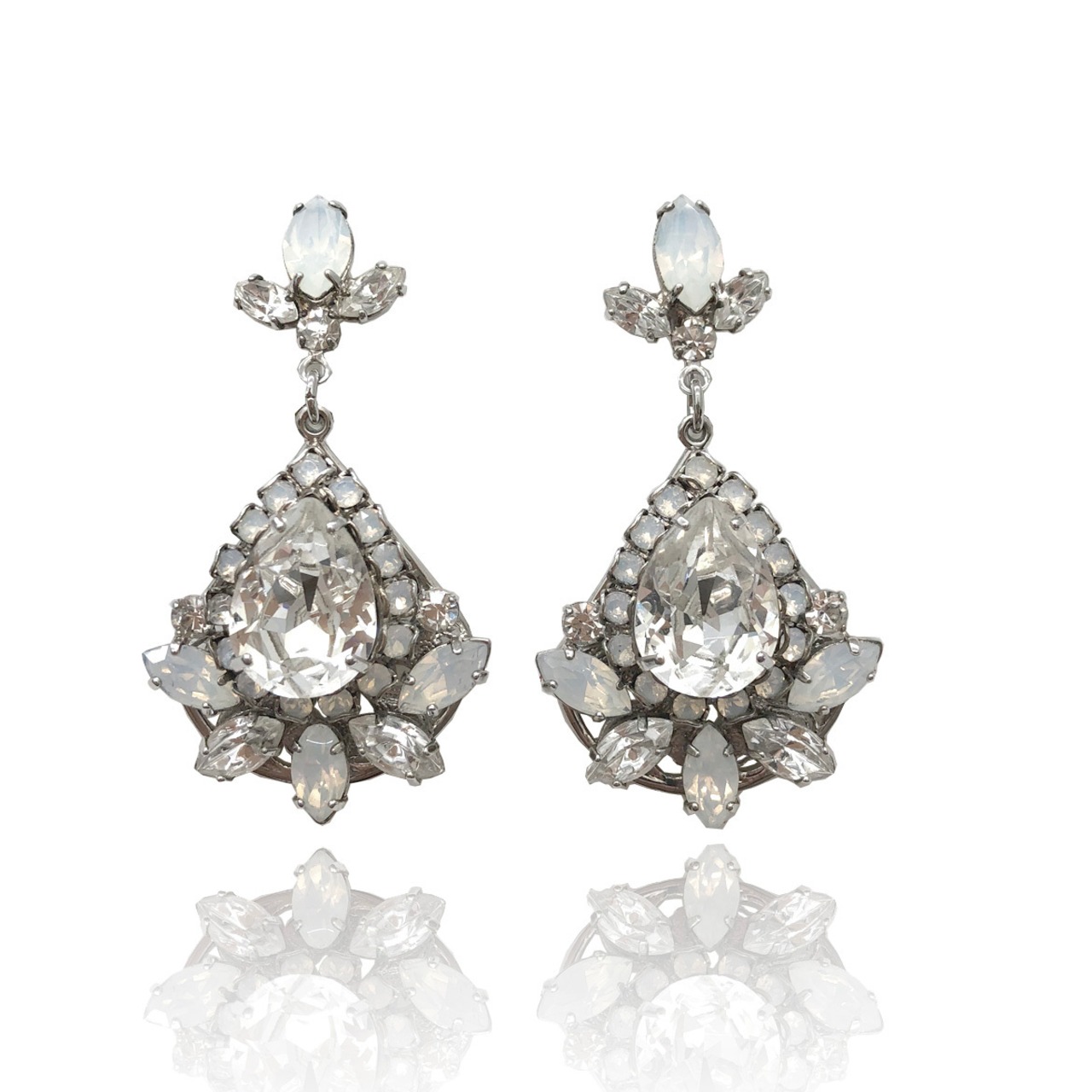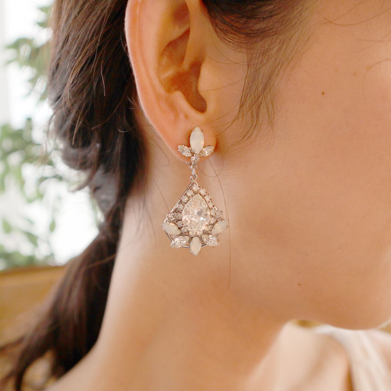 こちらのアイテムはホワイトオパールとクリスタルストーンを組み合わせたドロップイヤリングです。