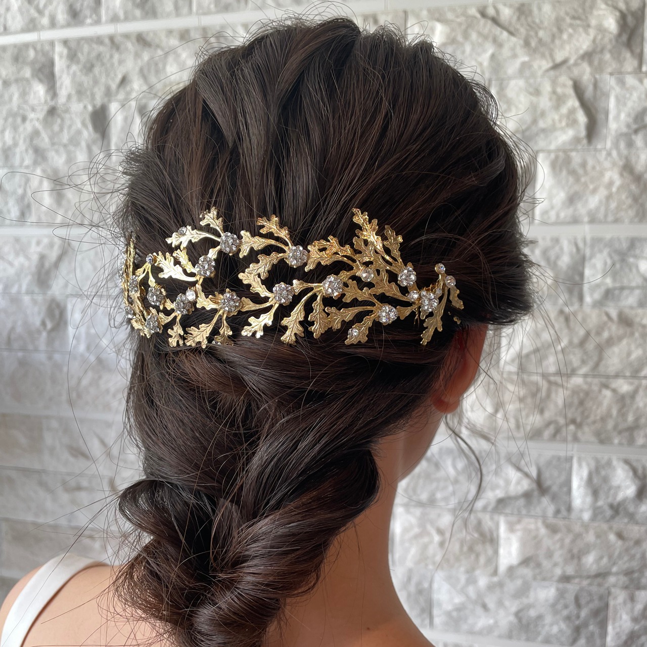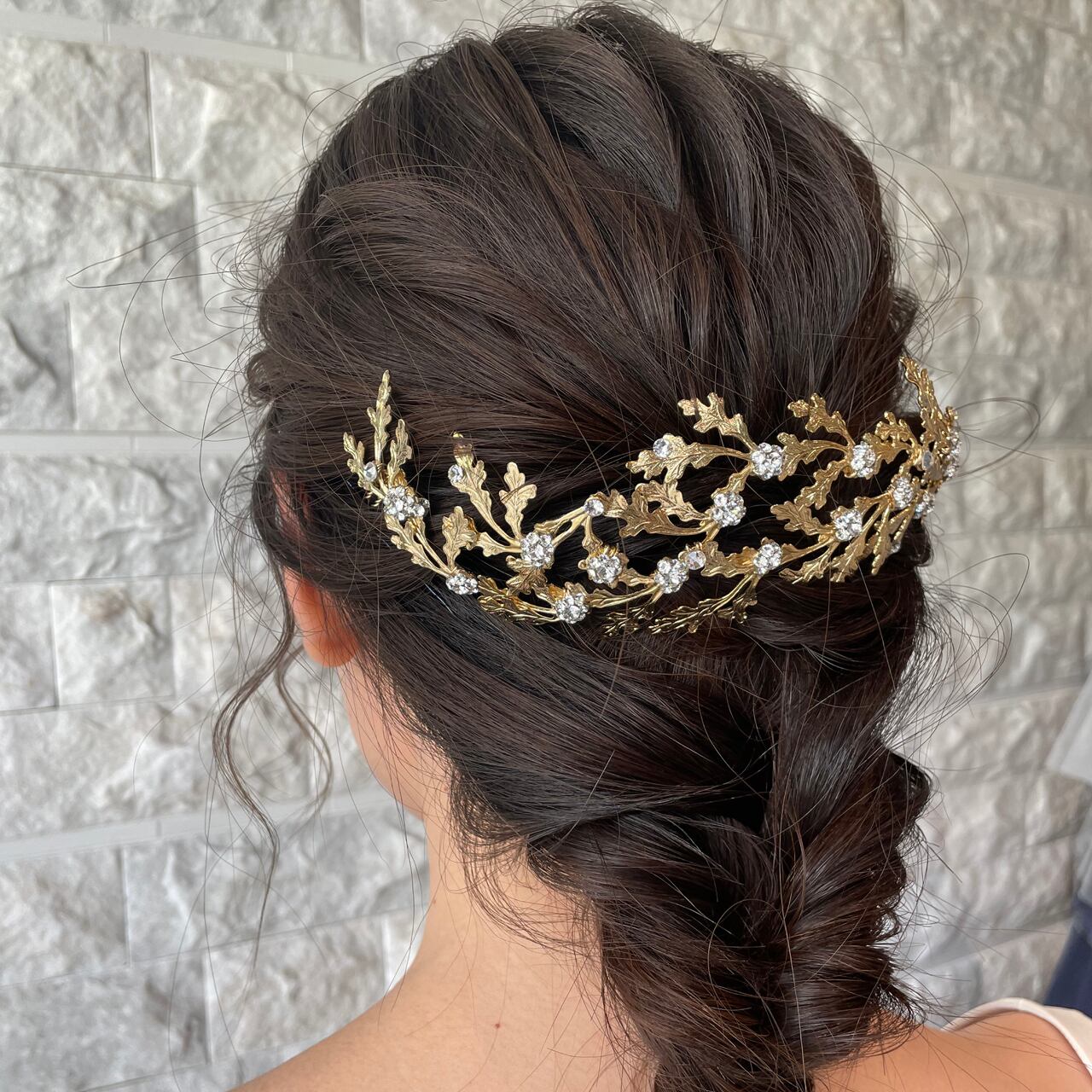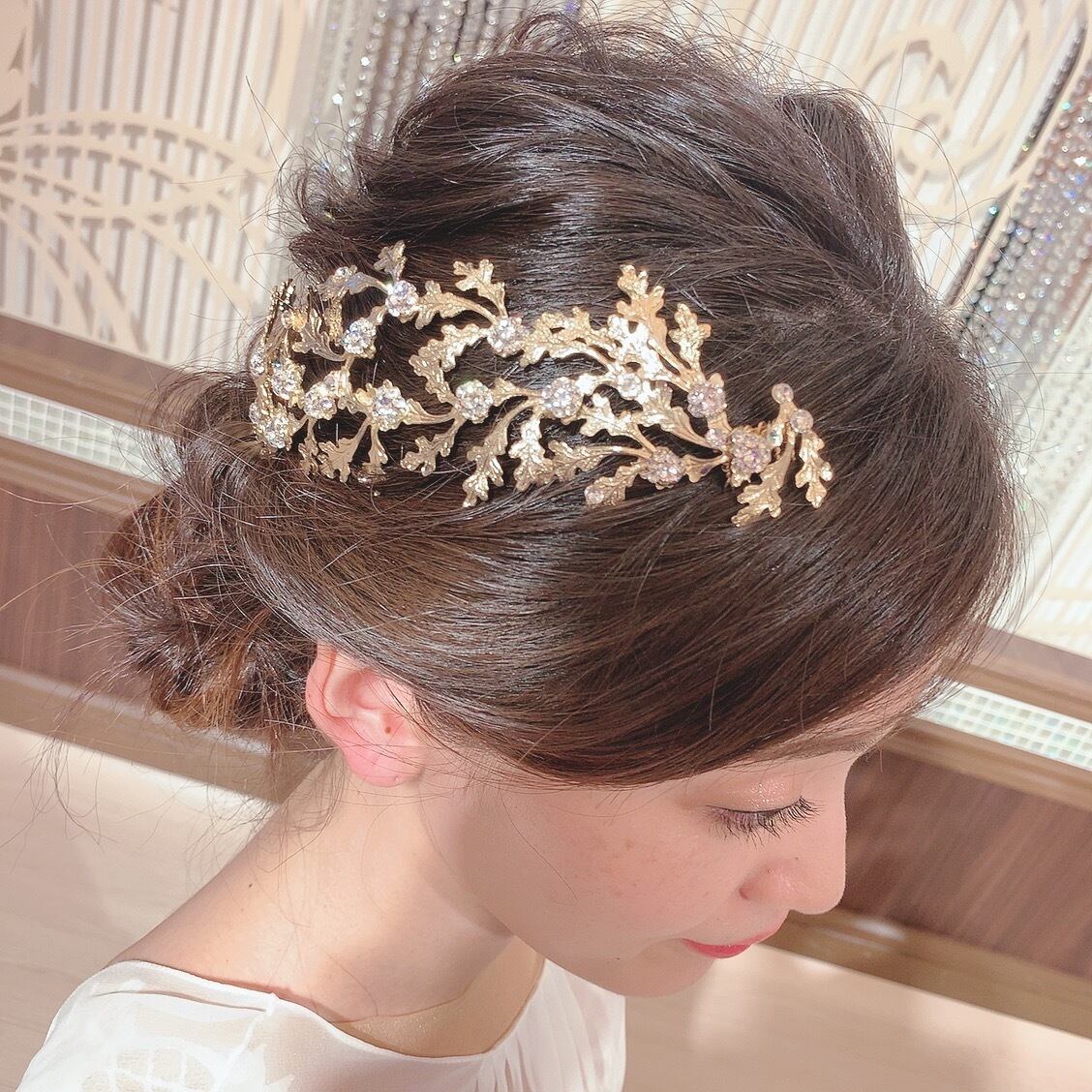 こちらのアイテムはスワロフスキーを使ったゴールドのヘッドコームです。