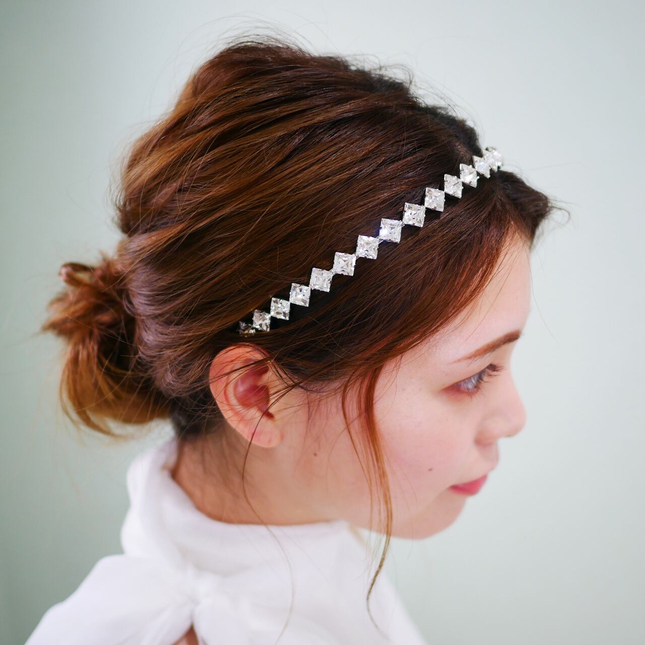 こちらのアイテムは、ベーシックなスクエアシェイプのスワロフスキーのカチューシャとなります。